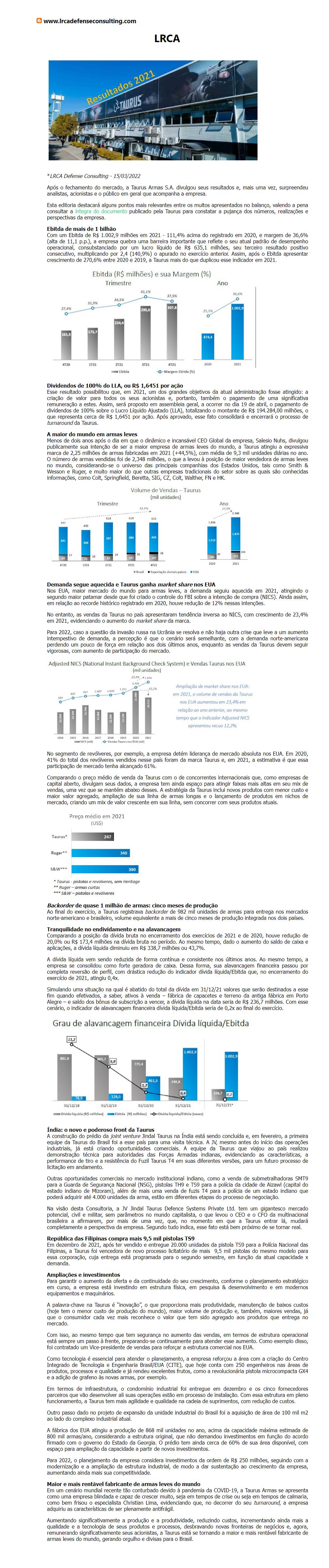 Com Ebtida de mais de R$ 1 bilhão, Taurus se torna a maior do mundo e pagará dividendos de R$ 1,6451 por ação