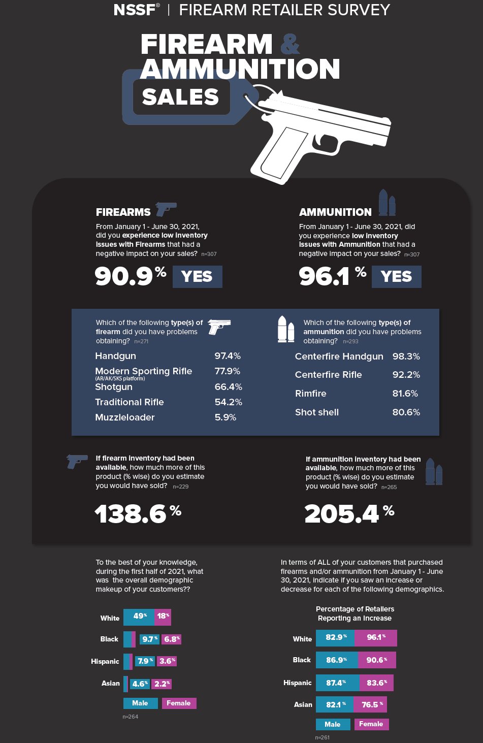 A pesquisa foi realizada para aprender os hábitos de compra e fatores particulares dos compradores de armas de fogo deste ano, durante os primeiros seis meses de 2021. Os entrevistados indicaram que 33,2 por cento dos clientes, ou 3.247.351 pessoas, compraram uma arma de fogo pela primeira vez, com base no total de junho de quase 9,8 milhões de verificações de antecedentes para uma venda de armas.