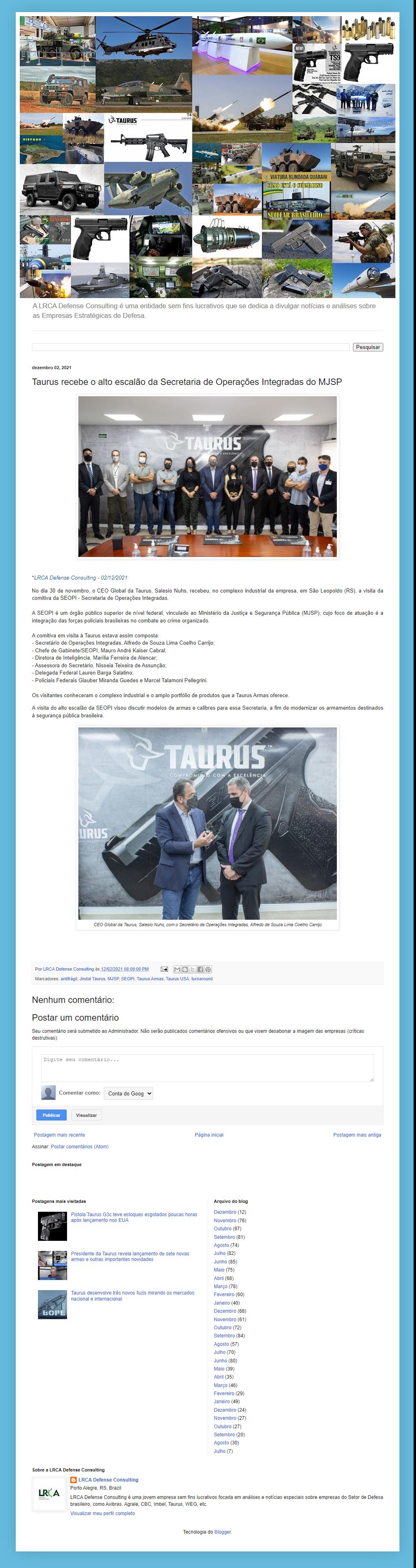 No dia 30 de novembro, o CEO Global da Taurus, Salesio Nuhs, recebeu, no complexo industrial da empresa, em São Leopoldo (RS), a visita da comitiva da SEOPI - Secretaria de Operações Integradas.