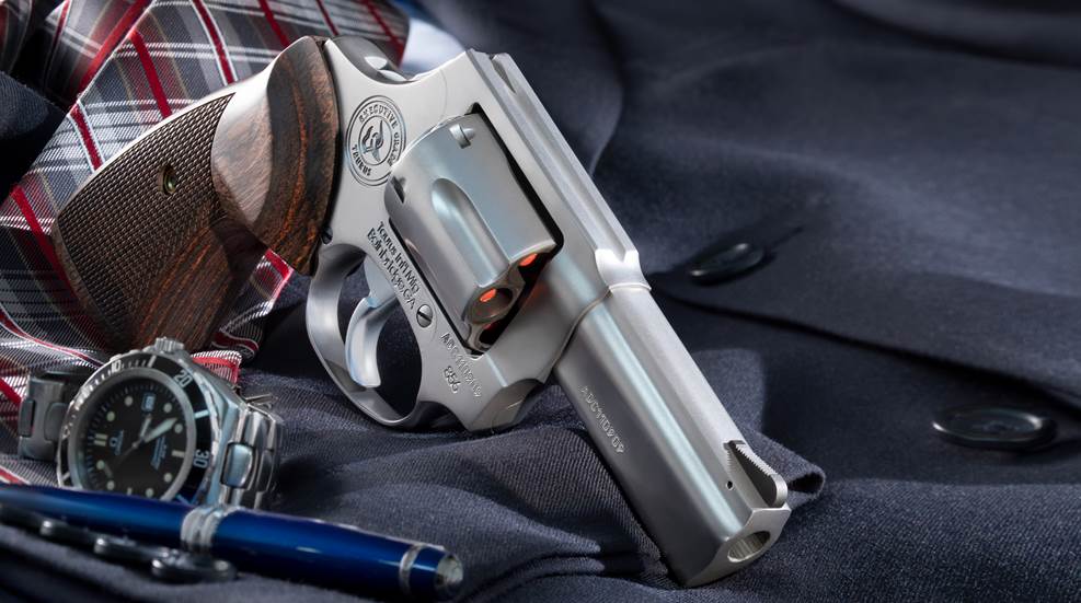 Seu gatilho de ação dupla é habilmente ajustado sob medida, entregando uma resistência suave, sem estágios no final do acionamento do gatilho. A mira frontal intercambiável é angulada, possibilitando um saque rápido sem obstáculos, e a apresentação com empunhaduras de madeira de qualidade dão ao revólver um estilo único que é tão funcional quanto bonito.